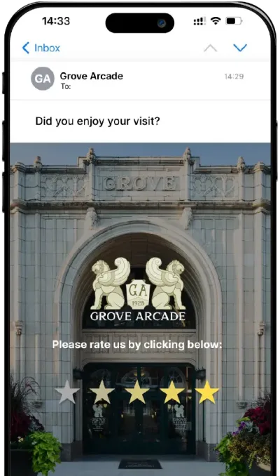 • Automatically ask every customer for a review after their visit